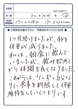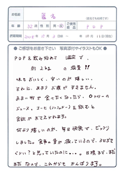 ホーム > 体験談 > 美容液ダイエットシェイク > お客様ボイス > プチダイエット! ーマイナス3kg以下ー